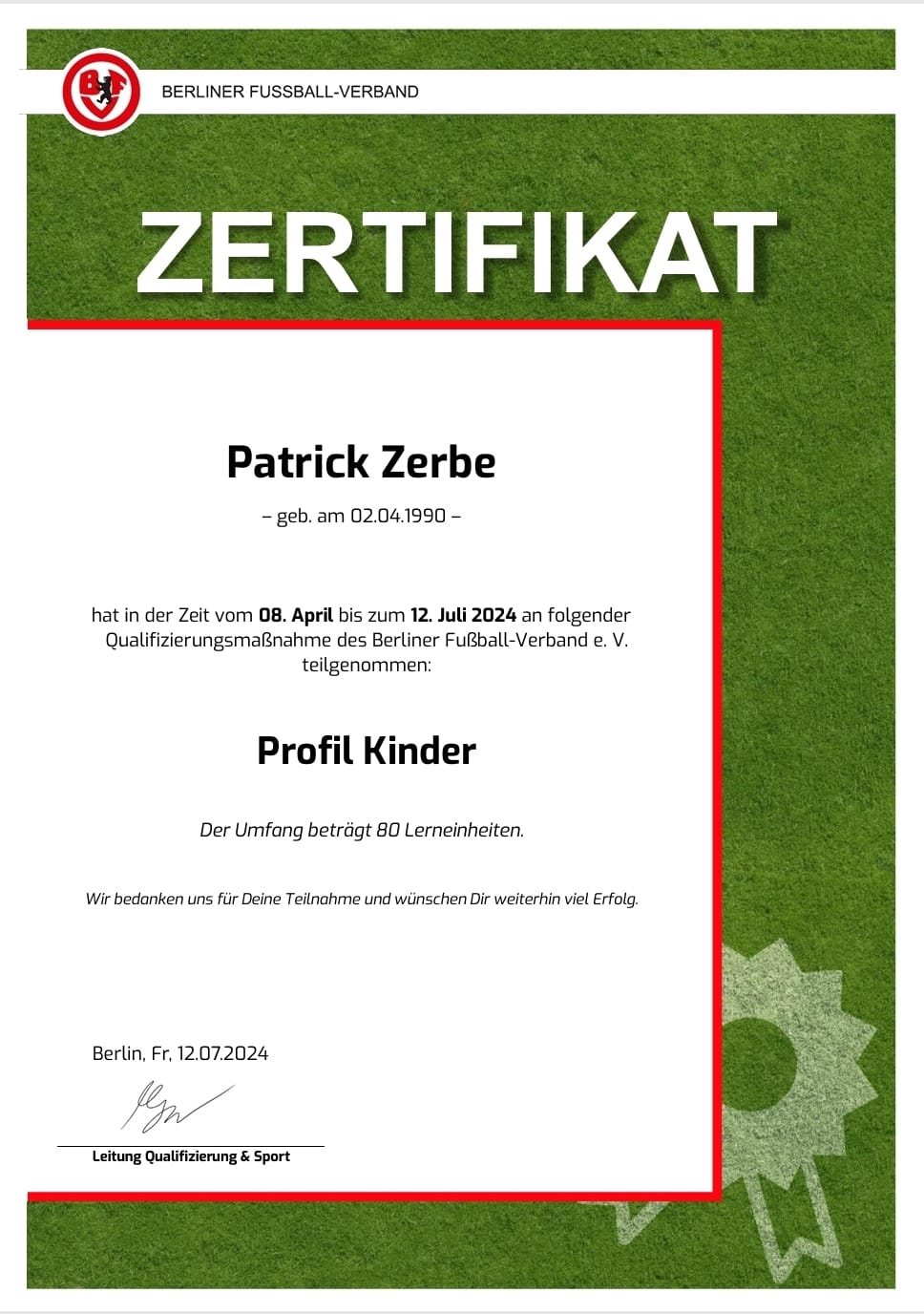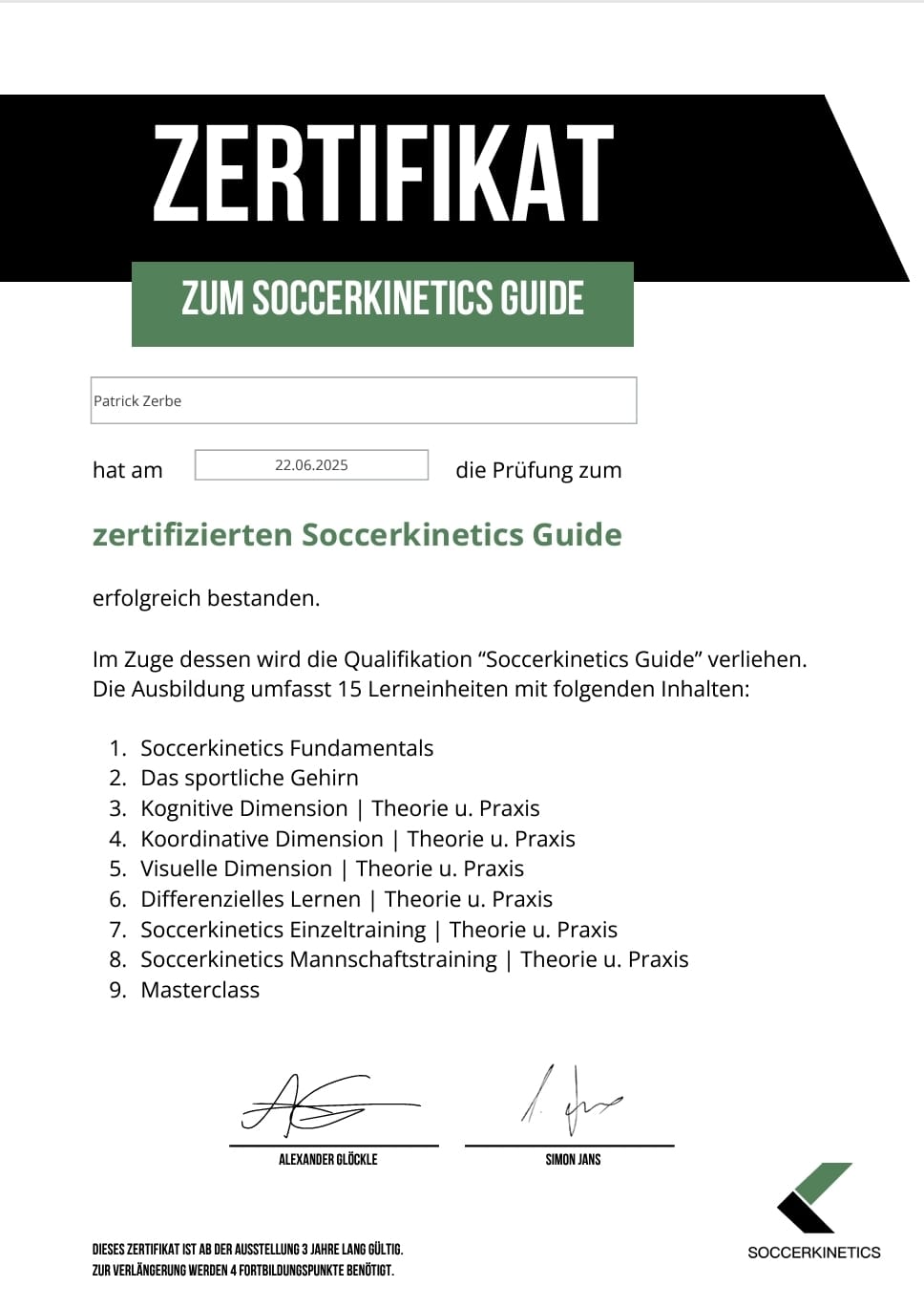 Patrick Zerbe steht für ein modernes, kindgerechtes und kognitiv anspruchsvolles Fußballtraining. Seine Schwerpunkte liegen in: